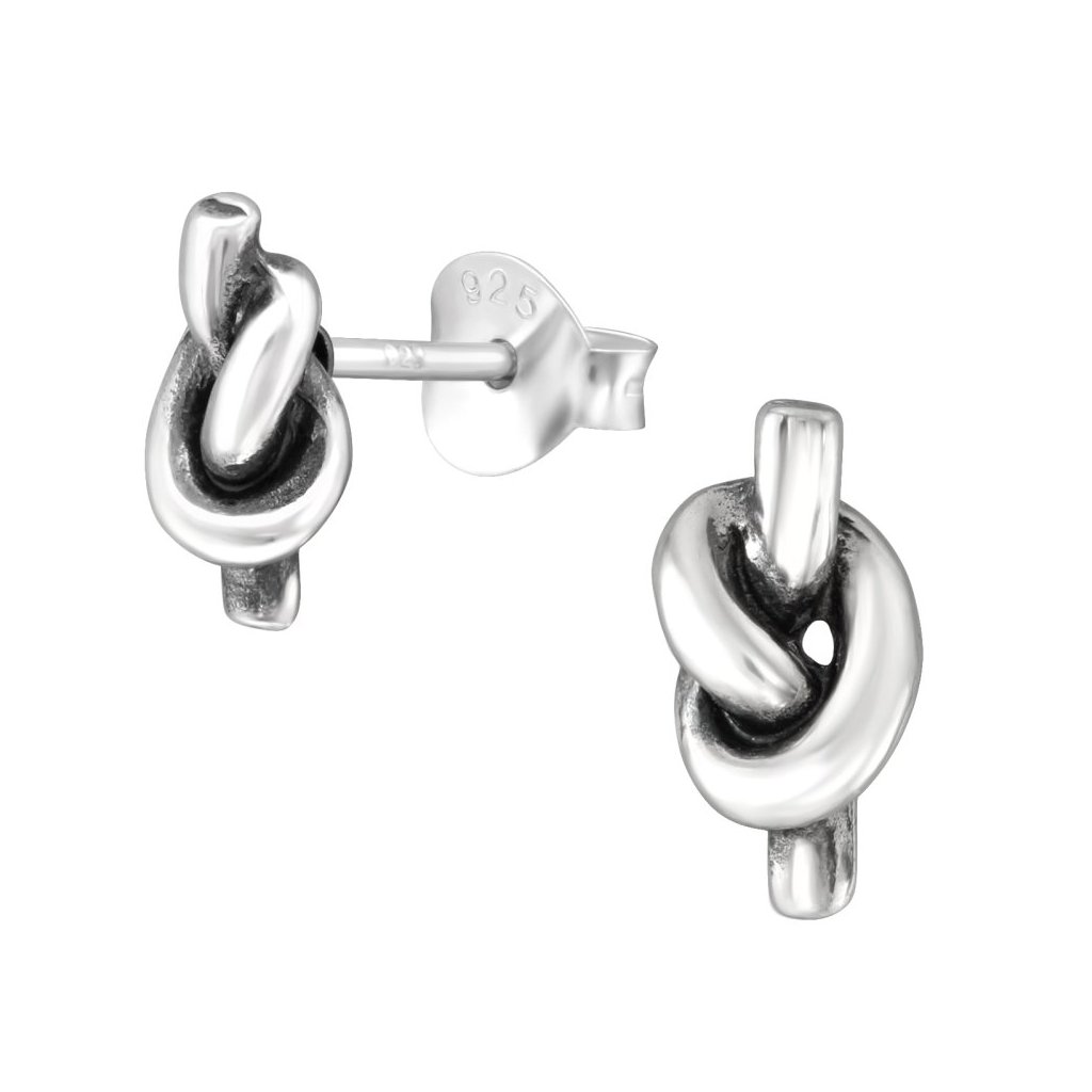 Stříbrné náušnice ve tvaru uzlu, určené pro ženy, jsou zpracovány s kombinací oxidace a E-coatu pro moderní a elegantní vzhled. S rozměry 5 × 8,8 mm a zapínáním na puzetu představují stylový a originální doplněk, který dokonale podtrhne každý outfit.