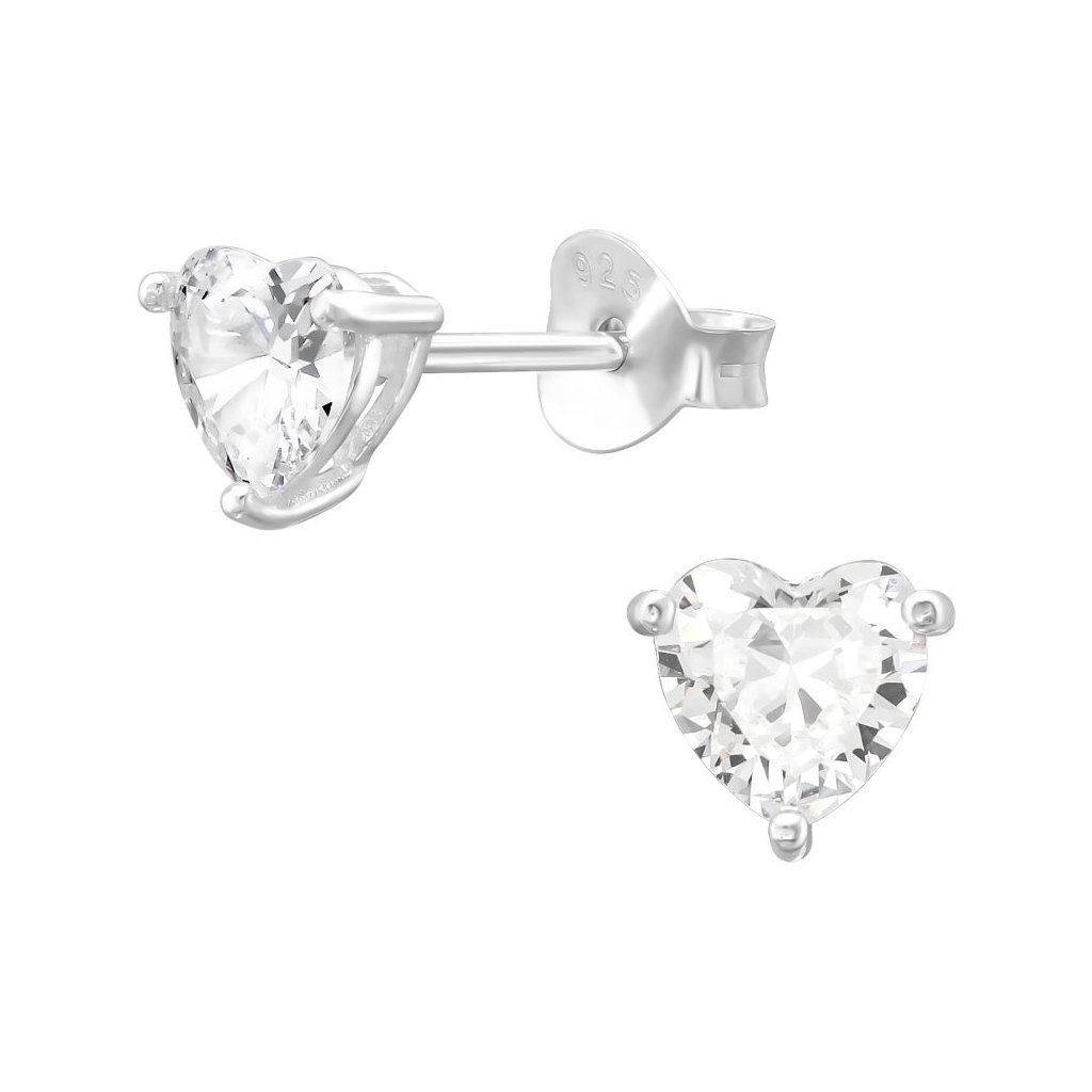 Stříbrné náušnice Vsazené srdce zirkon (CZ)