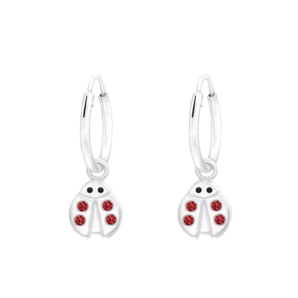Ozdoba ve tvaru berušky měří 7 × 7 mm a je zdobena červeným Krystalem, což dodává náušnicím veselý a výrazný nádech. Zapínání je řešeno kruhovým systémem o rozměrech 1,2 × 12 mm, což zaručuje pohodlné nošení.