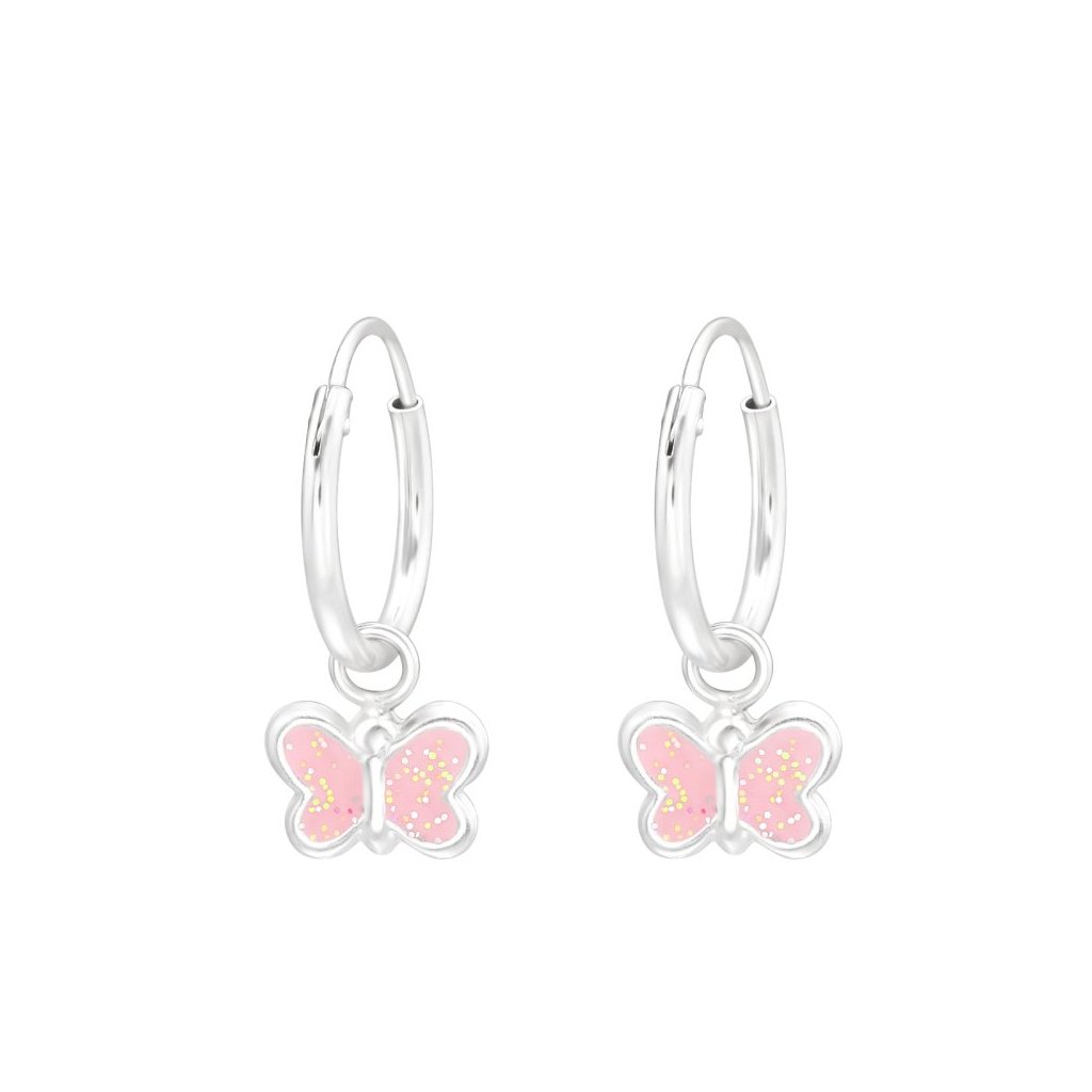 Ozdoba ve tvaru motýla měří 8 × 6 mm a dodává celému designu hravý a veselý nádech. Zapínání je řešeno kruhovými háčky o velikosti 1,2 × 12 mm, což zaručuje pohodlné nošení.