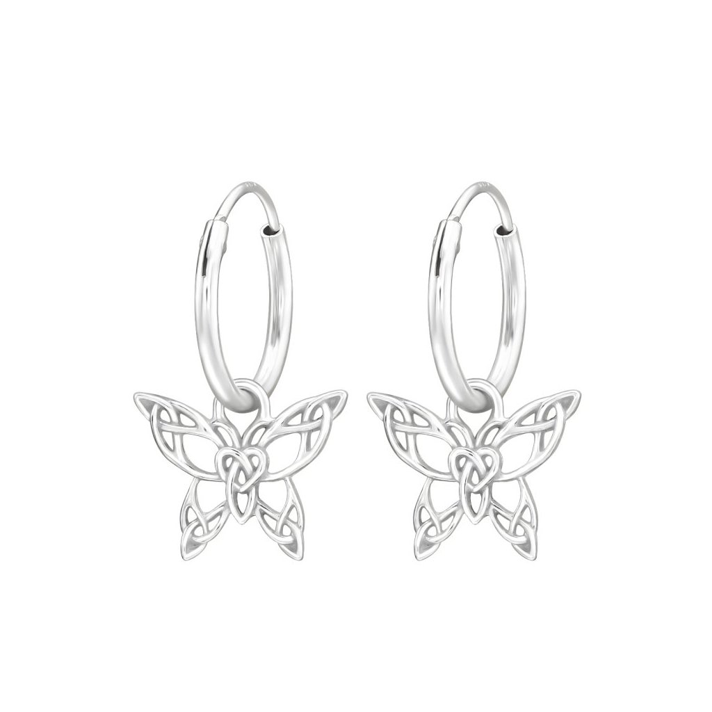 Stříbrné náušnice Závěsný motýl