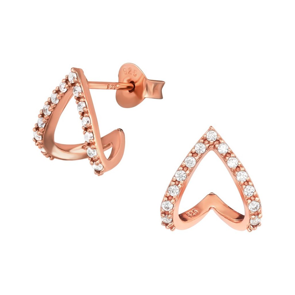 Stříbrné rosé nášnice Srdce se zirkony (CZ)