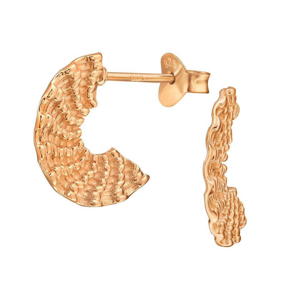 Stříbrné rosé náušnice Vějíř – elegance a texturovaný design