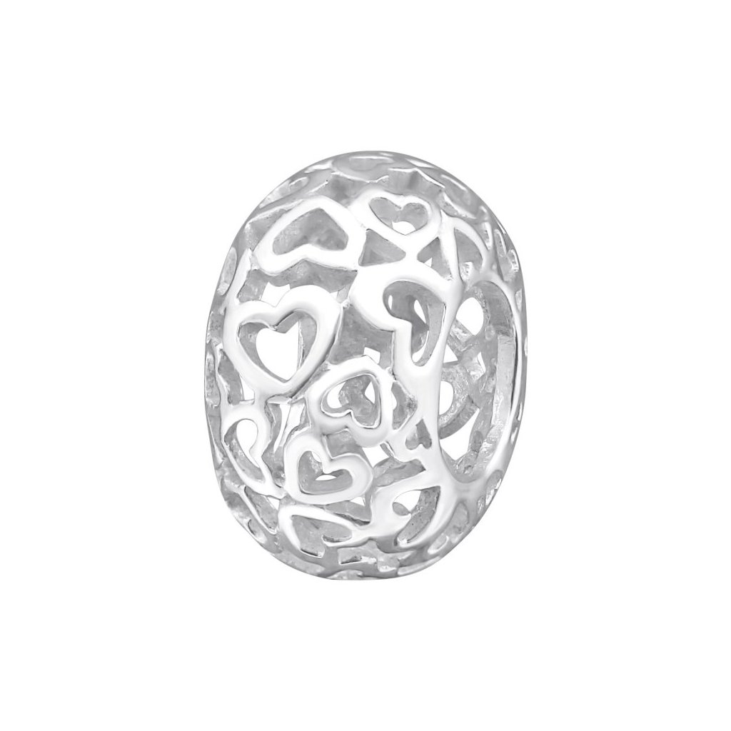 Okouzlující stříbrný filigránový korálek s motivy srdíček je dokonalým doplňkem pro vaše šperky. Tento nádherný kousek je vyroben z vysoce kvalitního stříbra ryzosti 925/1000, známého také jako sterling silver, které zaručuje dlouhotrvající lesk a odolnost.