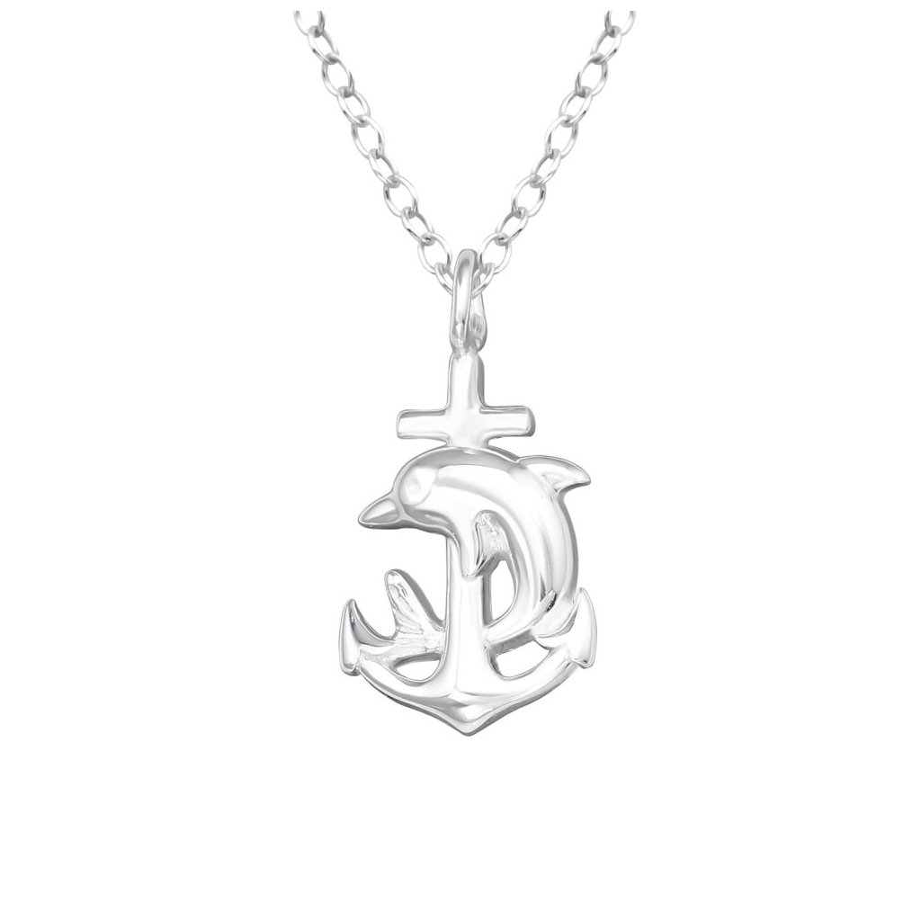 Stříbrný náhrdelník Delfín na kotvě
