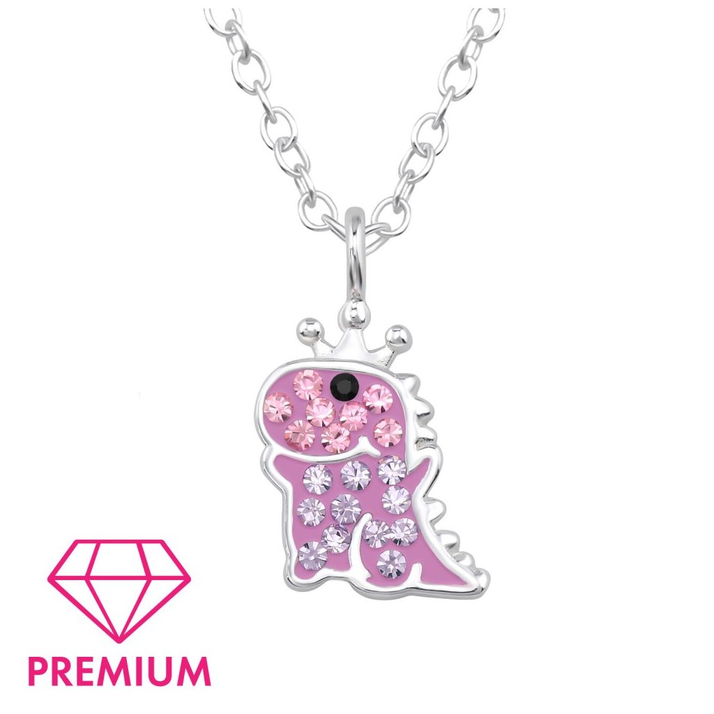 Dětský stříbrný náhrdelník Dinosaur s korunkou – kouzelný kousek pro malé princezny