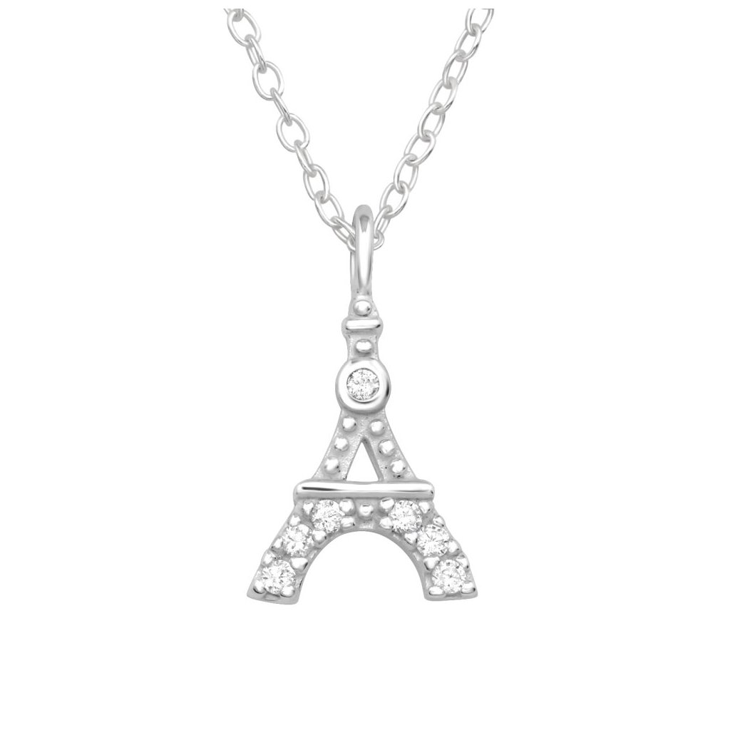 Stříbrný náhrdelník Eiffelova věž se zirkony (CZ)
