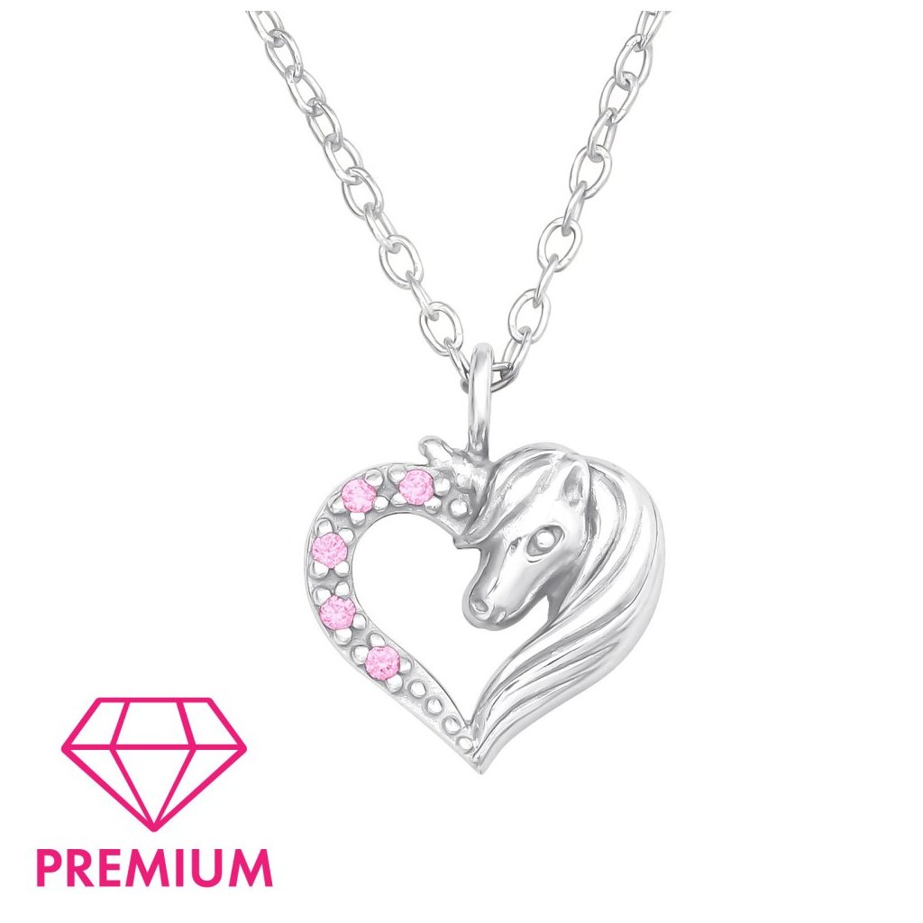 Stříbrný náhrdelník Jednorožec v srdci s růžovými zirkony (CZ)