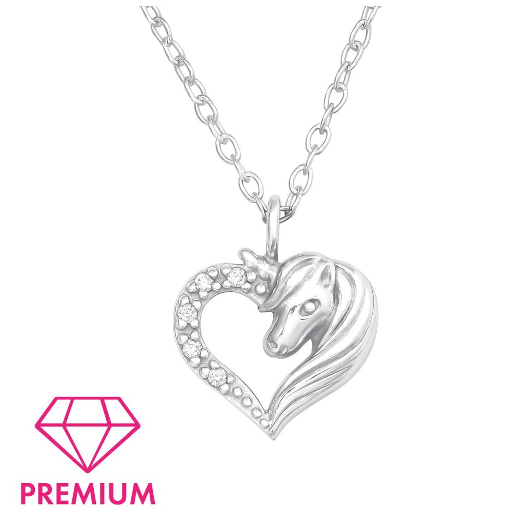 Stříbrný náhrdelník Jednorožec v srdci se zirkony (CZ)