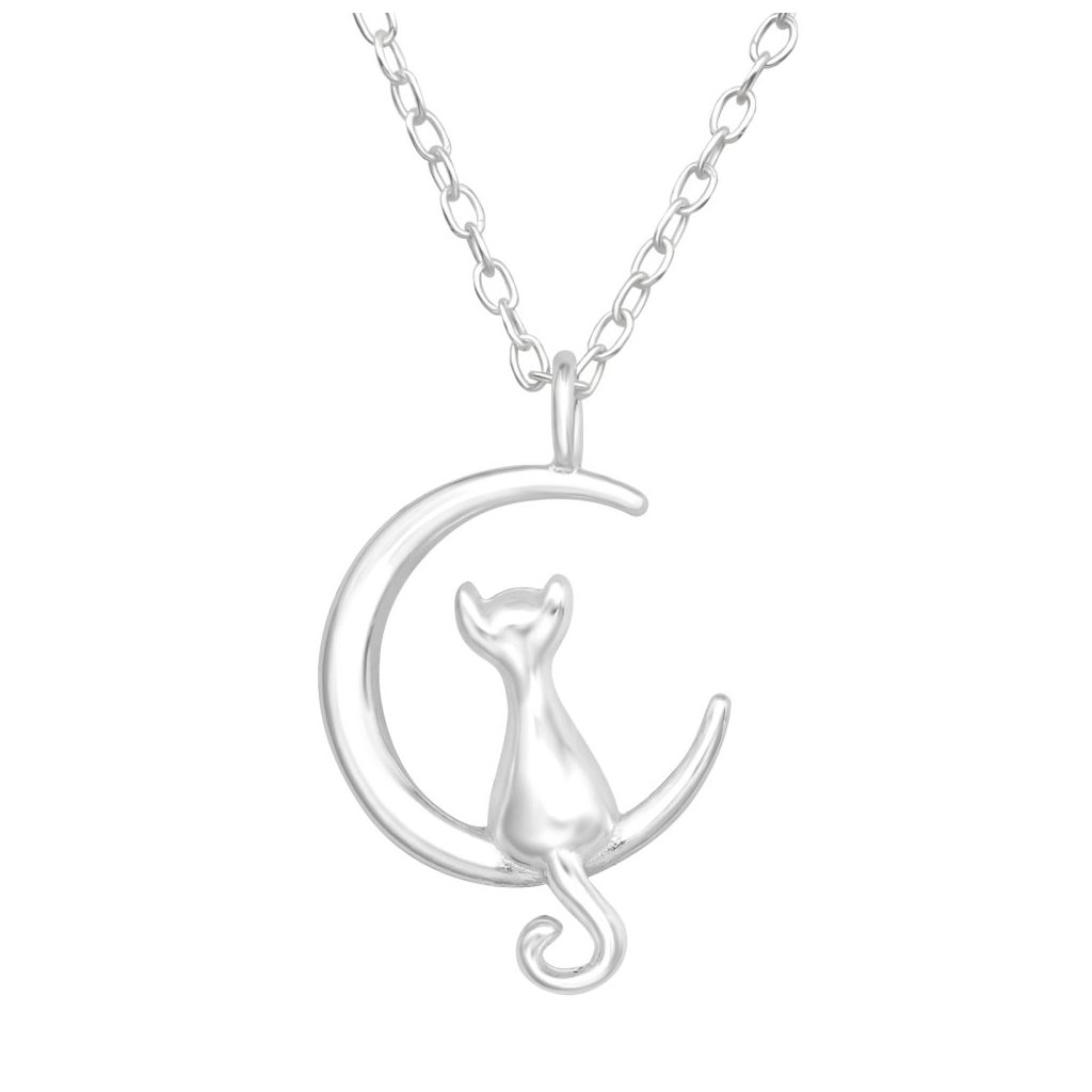 Stříbrný náhrdelník Kočka na půlměsíci