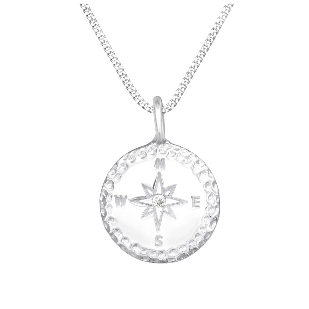 Stříbrný náhrdelník Kompas se zirkonem (CZ)
