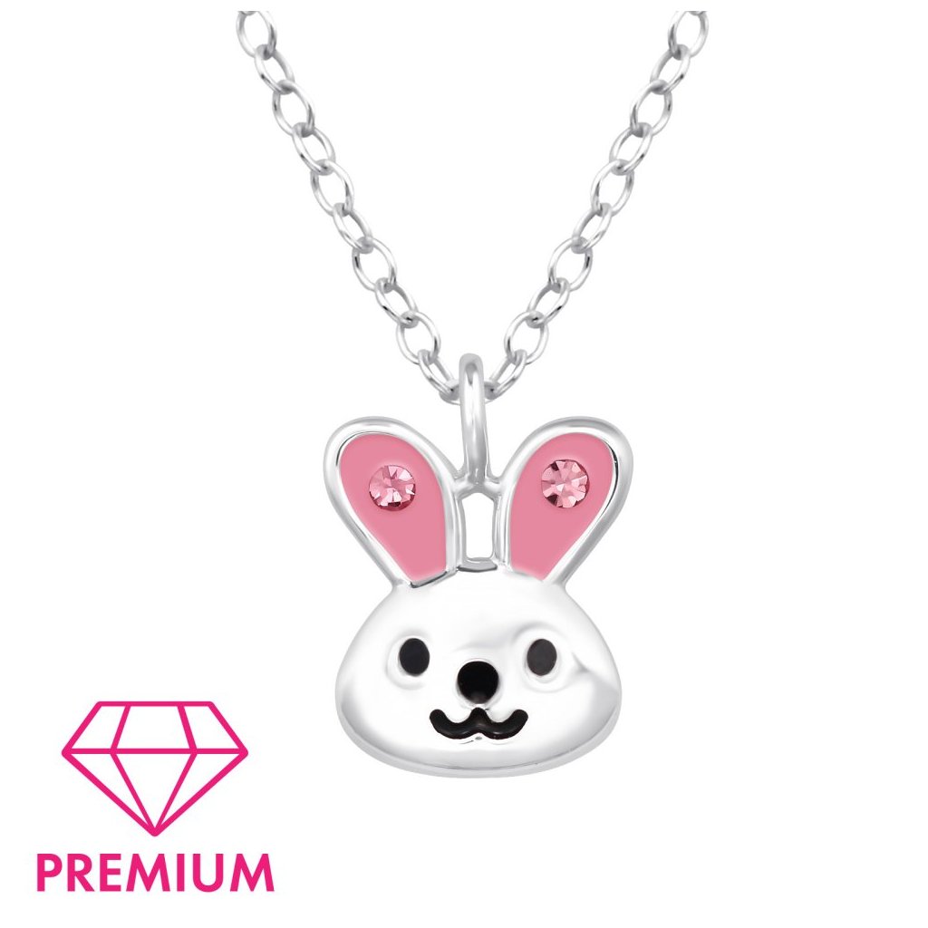 Stříbrný náhrdelník Králík je roztomilým doplňkem pro děti. Vyrobený ze stříbra s E-coat úpravou, náhrdelník je zdoben dvěma růžovými Krystaly a epoxidem, což mu dodává hravý a veselý vzhled. Délka náhrdelníku je 39 cm, šířka řetízku 1 mm a velikost přívěsku je 7,4 × 8,8 mm. Tento náhrdelník je ideální pro každodenní nošení i speciální příležitosti, přinášející do outfitu nádech radosti a hravosti!