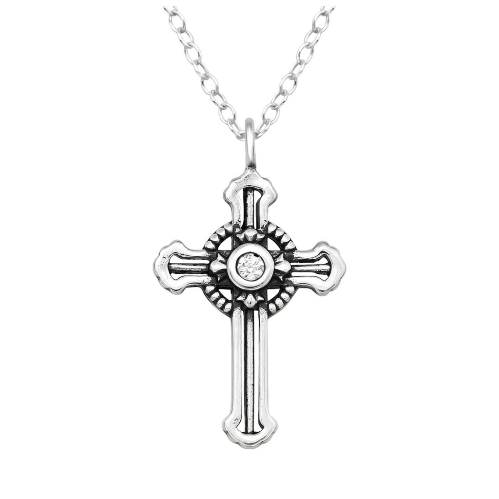 Stříbrný náhrdelník Kříž se zirkonem (CZ)