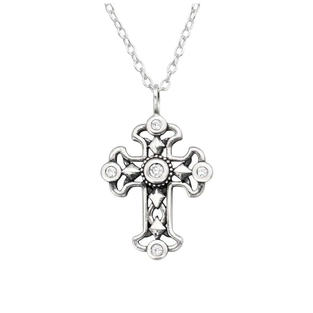 Stříbrný náhrdelník Kříž se zirkony (CZ)