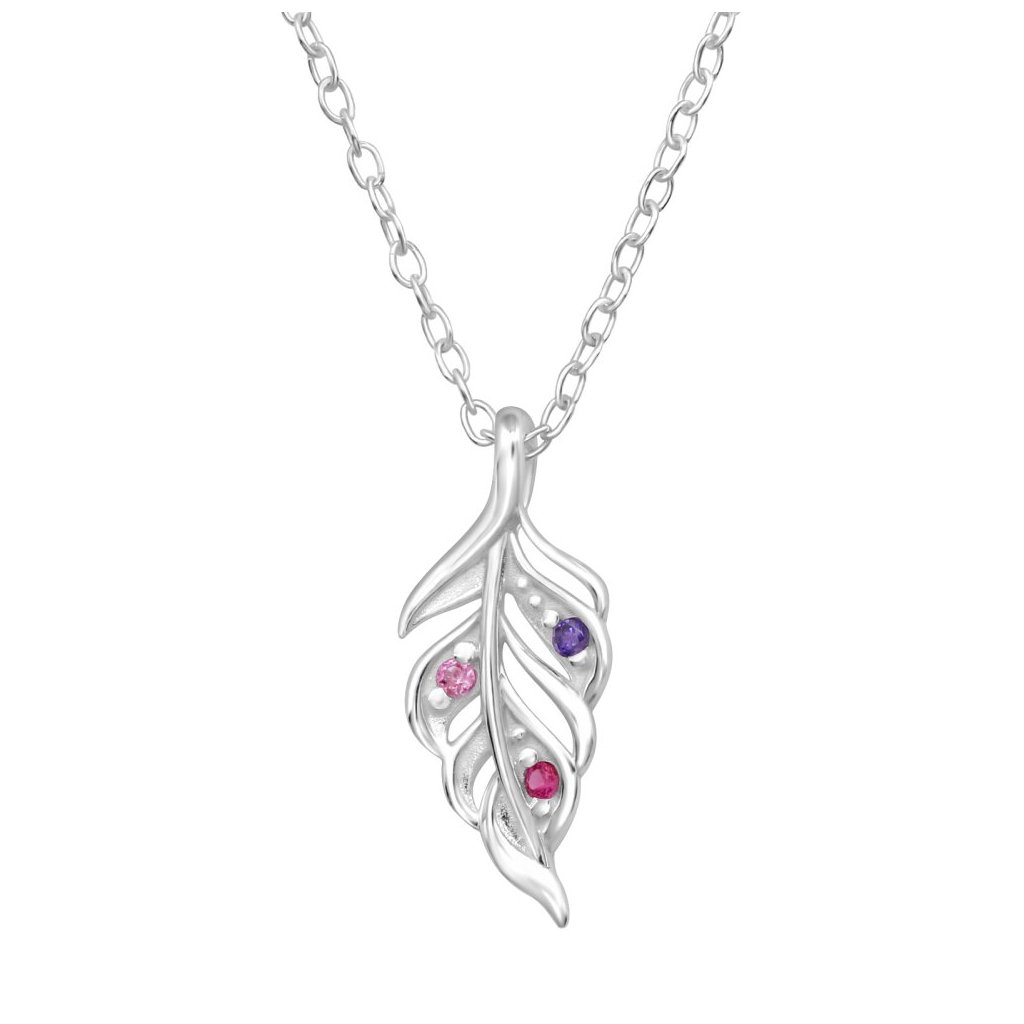 Stříbrný náhrdelník List se zirkony je elegantním a stylovým doplňkem pro každou ženu. Vyrobený ze stříbra s E-coat úpravou, náhrdelník je zdoben kubickou zirkonií v odstínech růžové, fialové a granátové, což mu dodává výrazný a atraktivní vzhled. Délka náhrdelníku je 45 cm, šířka řetízku 1 mm a velikost přívěsku je 7 × 13 mm. Tento náhrdelník je ideální pro každodenní nošení i speciální příležitosti, přinášející do vašeho outfitu nádech elegance a barevnosti!
