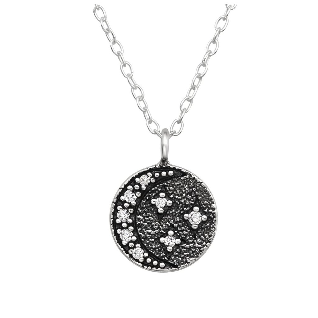 Stříbrný náhrdelník Měsíc a hvězdy se zirkony (CZ)