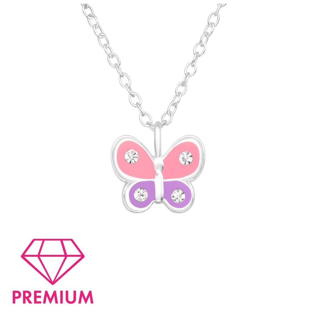 Dětský stříbrný náhrdelník Motýl s barevnými křídly – Kouzlo jara v každém detailu
