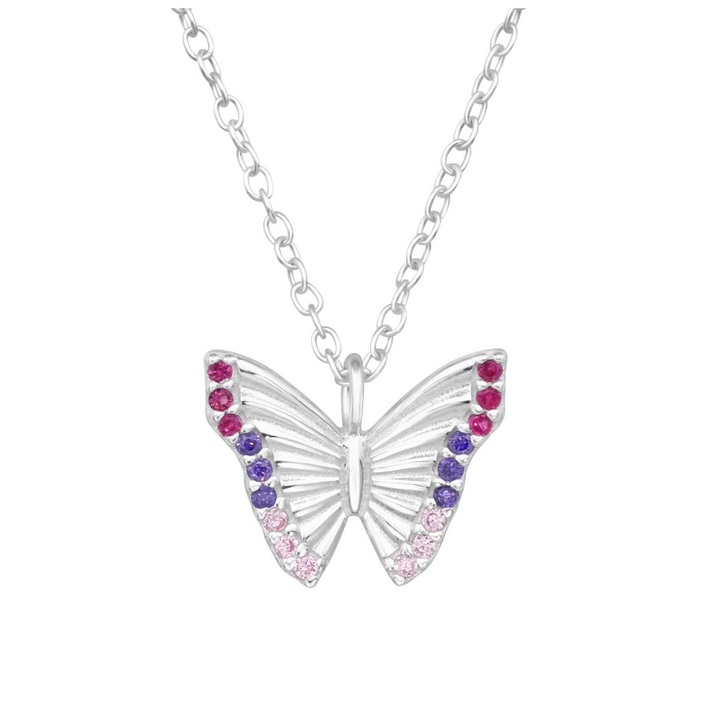 Stříbrný náhrdelník Motýl se zirkony (CZ)