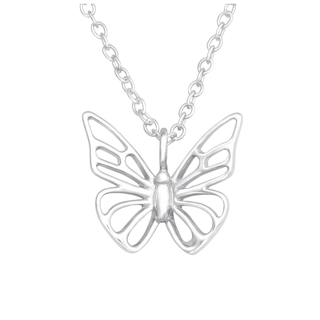 Stříbrný náhrdelník s motivem motýla, určený pro ženy, je potažený E-coatem pro ochranu a lesk. S délkou 45 cm, tloušťkou 1 mm a přívěskem o rozměrech 12 × 12 mm představuje elegantní a hravý doplněk, který dodá každému outfitu šarm a jemnost.