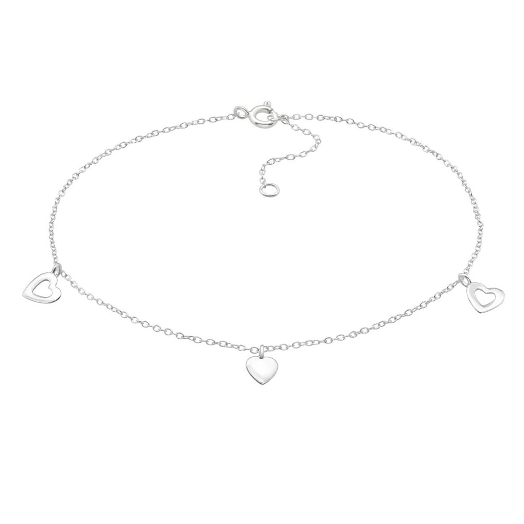 Stříbrný náhrdelník na nohu Tři srdce je elegantním doplňkem pro ženy. Díky E-coat povrchové úpravě si zachovává lesk a odolnost. S délkou 26 cm a tloušťkou 1 mm je ideální pro letní outfity a speciální příležitosti. Design o rozměrech 6,1 × 7,1 mm dodává náhrdelníku romantický a stylový nádech.