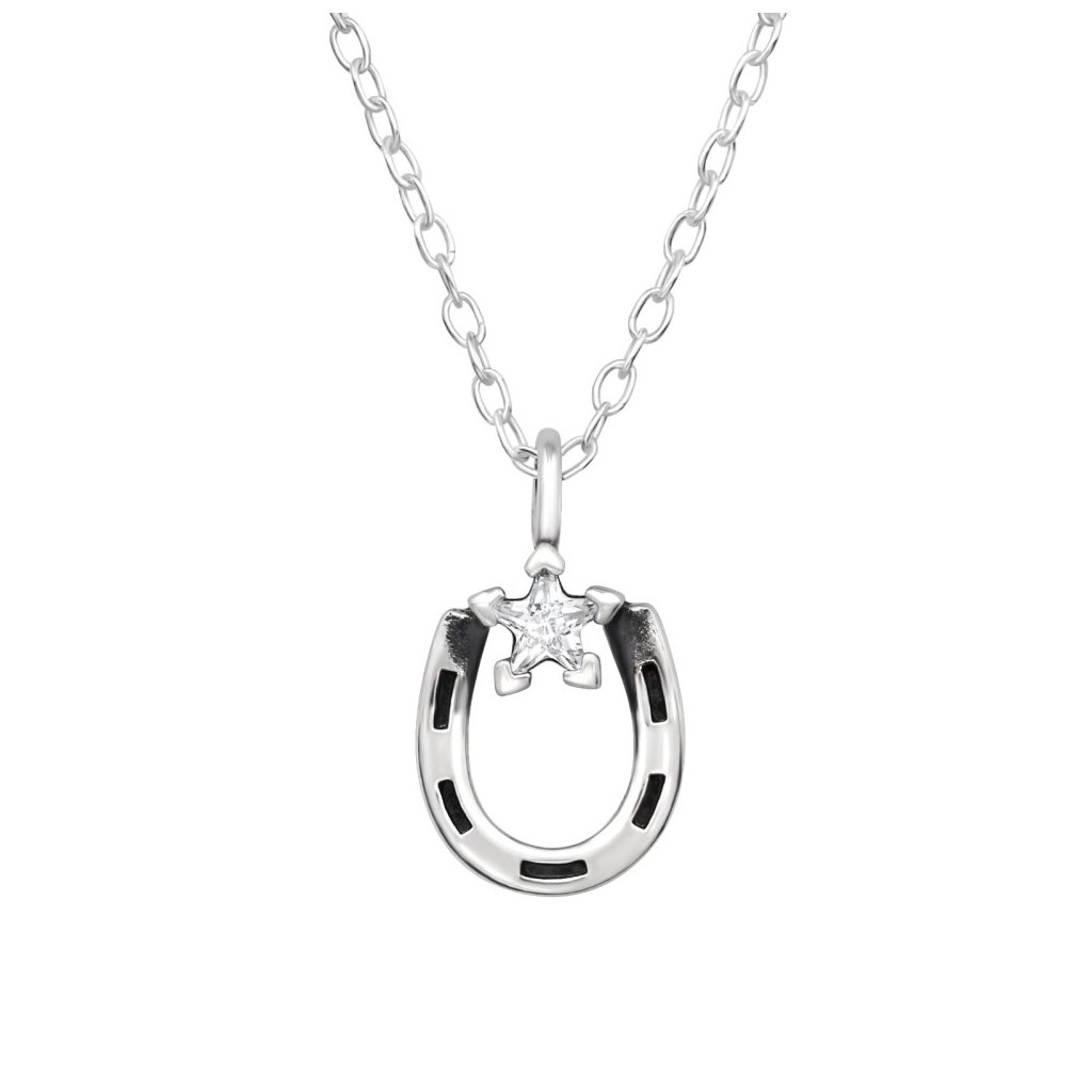 Stříbrný náhrdelník Podkova se zirkony (CZ)