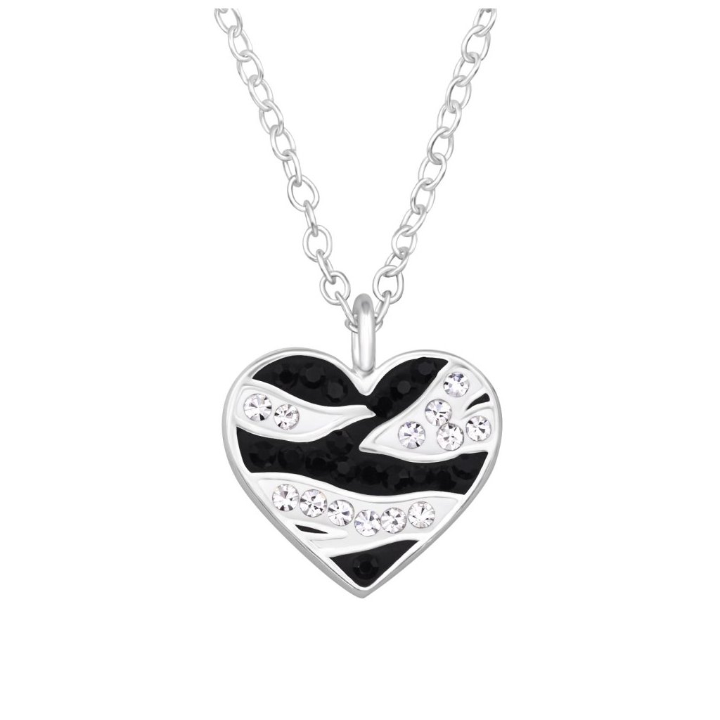 Stříbrný náhrdelník s motivem černo-bílého srdce je elegantním a nadčasovým doplňkem pro každou ženu. Tento náhrdelník, vyrobený ze stříbra s e-coat úpravou, zajišťuje trvanlivost a nádherný lesk.