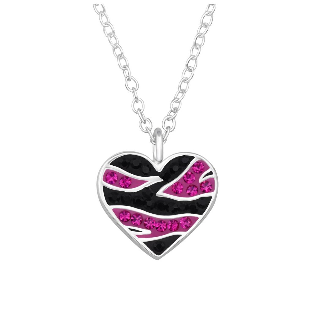 Stříbrný náhrdelník s motivem černo-růžového srdce je elegantním a výrazným doplňkem pro každou ženu. Vyrobený ze stříbra s e-coat úpravou, zajišťuje dlouhou životnost a nádherný lesk.