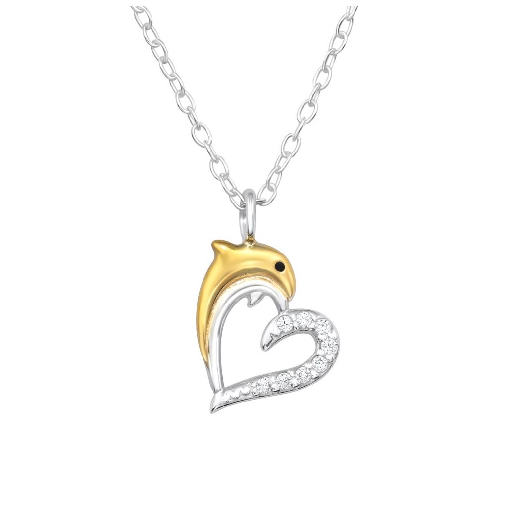 Stříbrný náhrdelník Srdce delfína se zirkony (CZ)