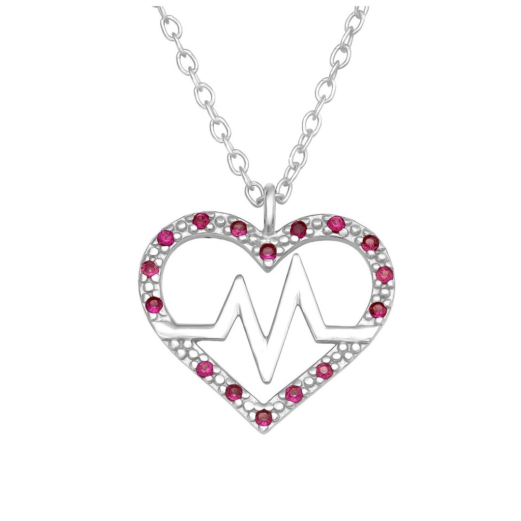 Stříbrný náhrdelník s motivem srdce, určený pro ženy, je potažený E-coatem a zdobený růžovými kubickými zirkony (CZ). S délkou 45 cm, tloušťkou 1 mm a přívěskem o rozměrech 16 × 14 mm představuje romantický a elegantní doplněk, který dodá šarm každému outfitu.