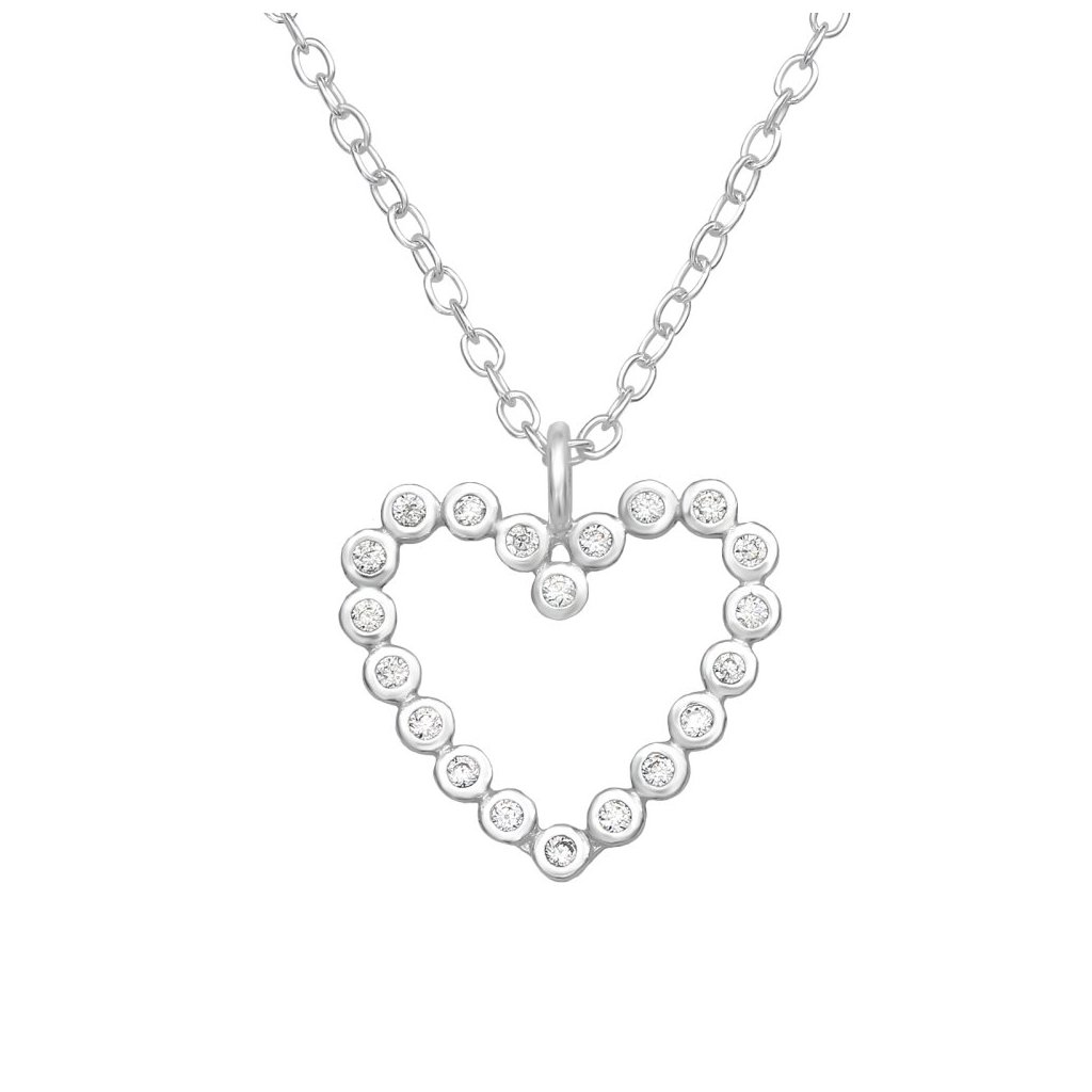 Stříbrný náhrdelník Srdce vysázeno zirkony (CZ)