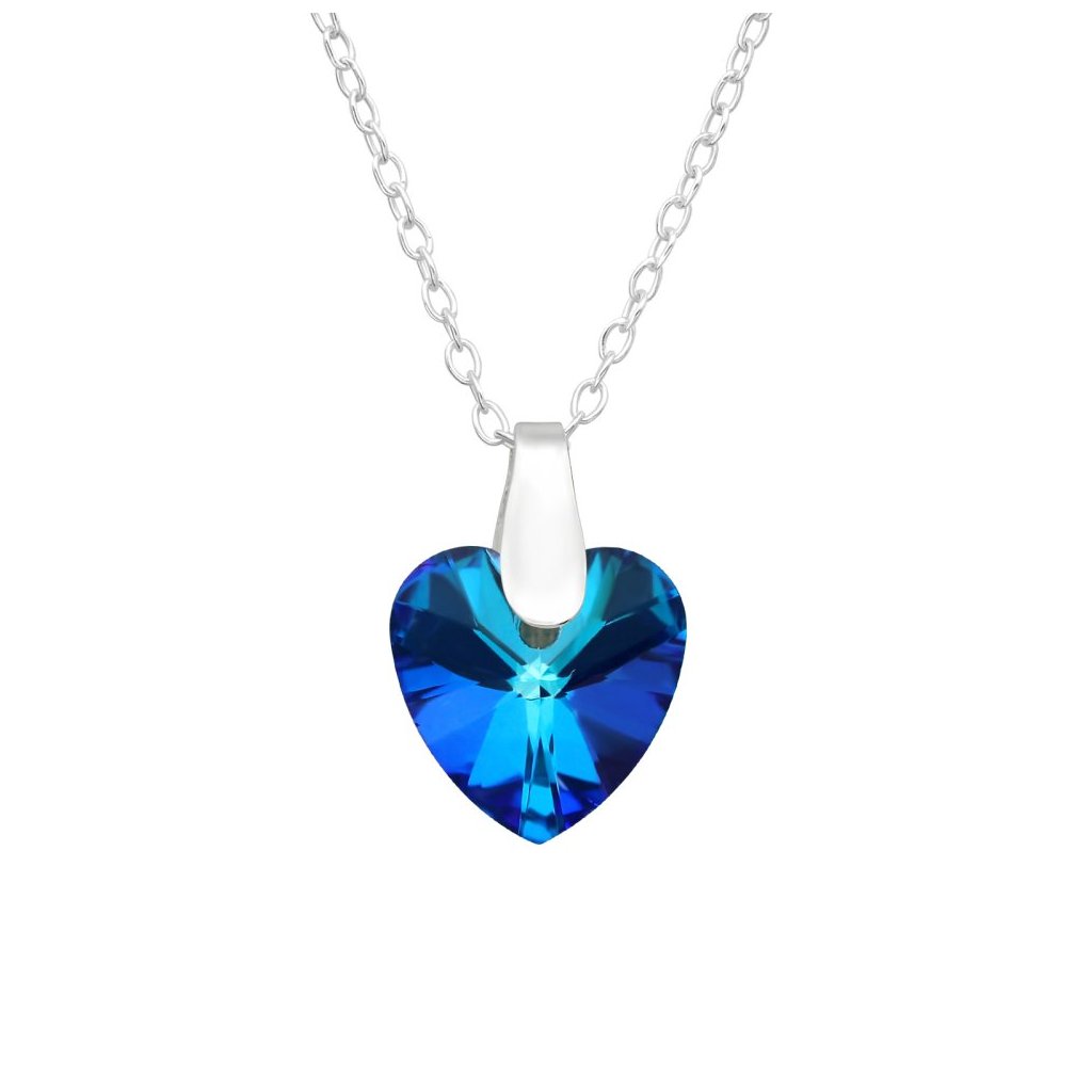 Stříbrný náhrdelník Srdce z modrého krystalu