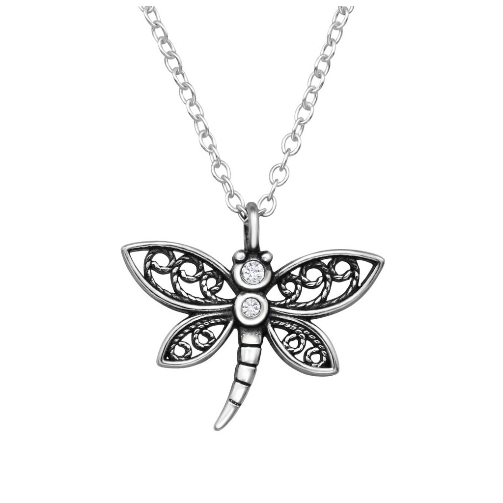 Stříbrný náhrdelník Vážka se zirkony (CZ)