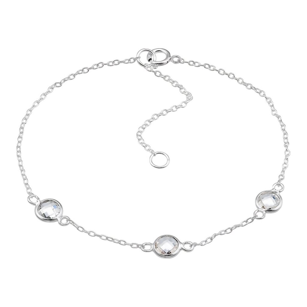 Stříbrný náhrdelník na nohu Tři kulaté zirkony je elegantním doplňkem pro ženy. Zdobený čirými kubickými zirkoniemi a s E-coat povrchovou úpravou, zůstává lesklý a odolný. S délkou 20 cm a tloušťkou 1 mm je ideální pro letní outfit a speciální příležitosti. Design o rozměrech 5 × 5 mm přidá vašemu vzhledu sofistikovaný a stylový nádech.