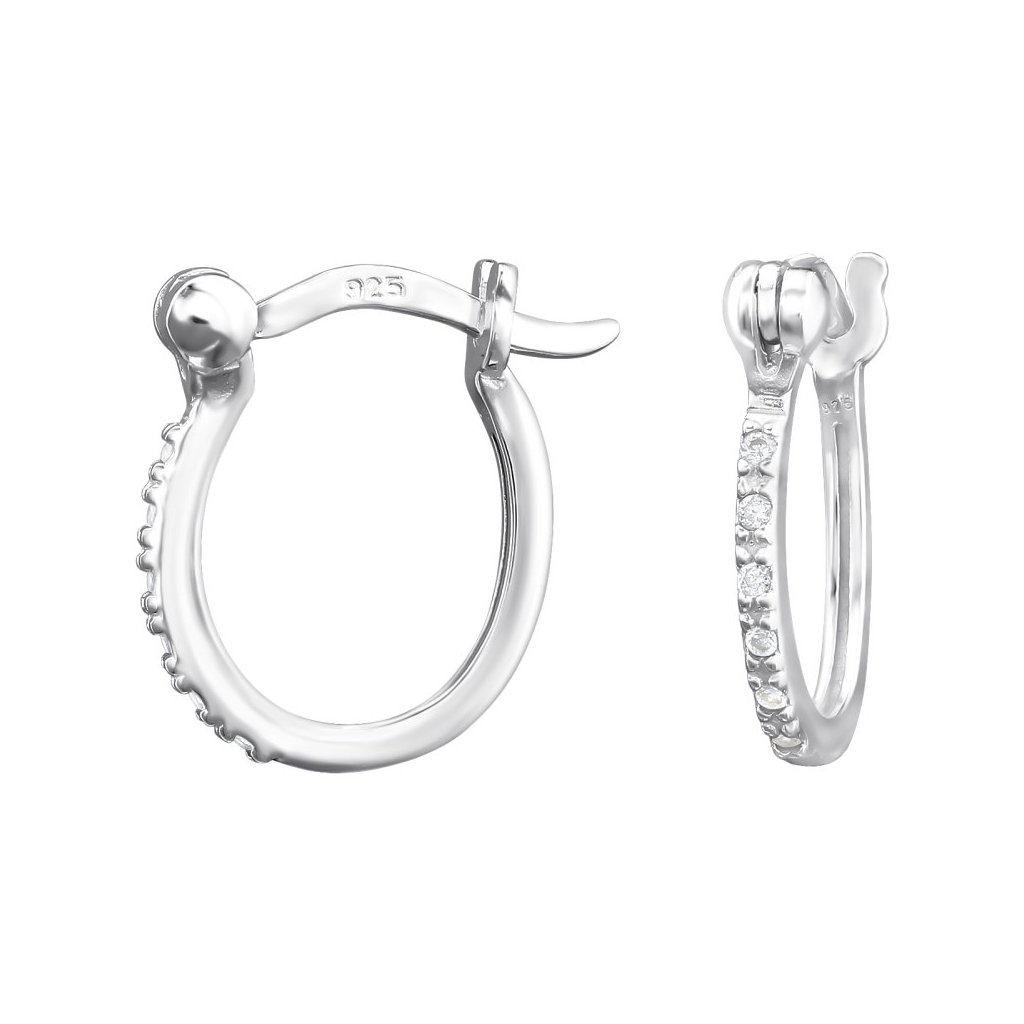 Stříbrný náušnice Obruč se zirkony (CZ)