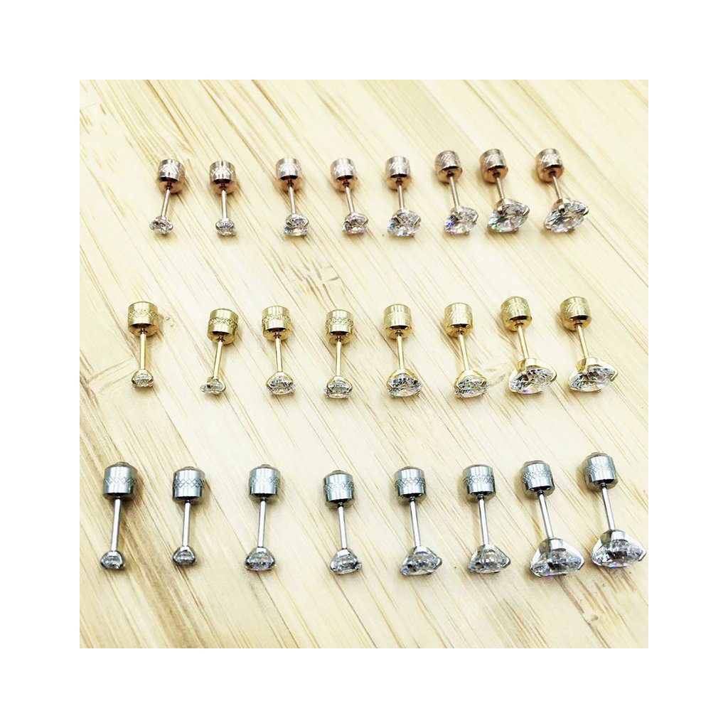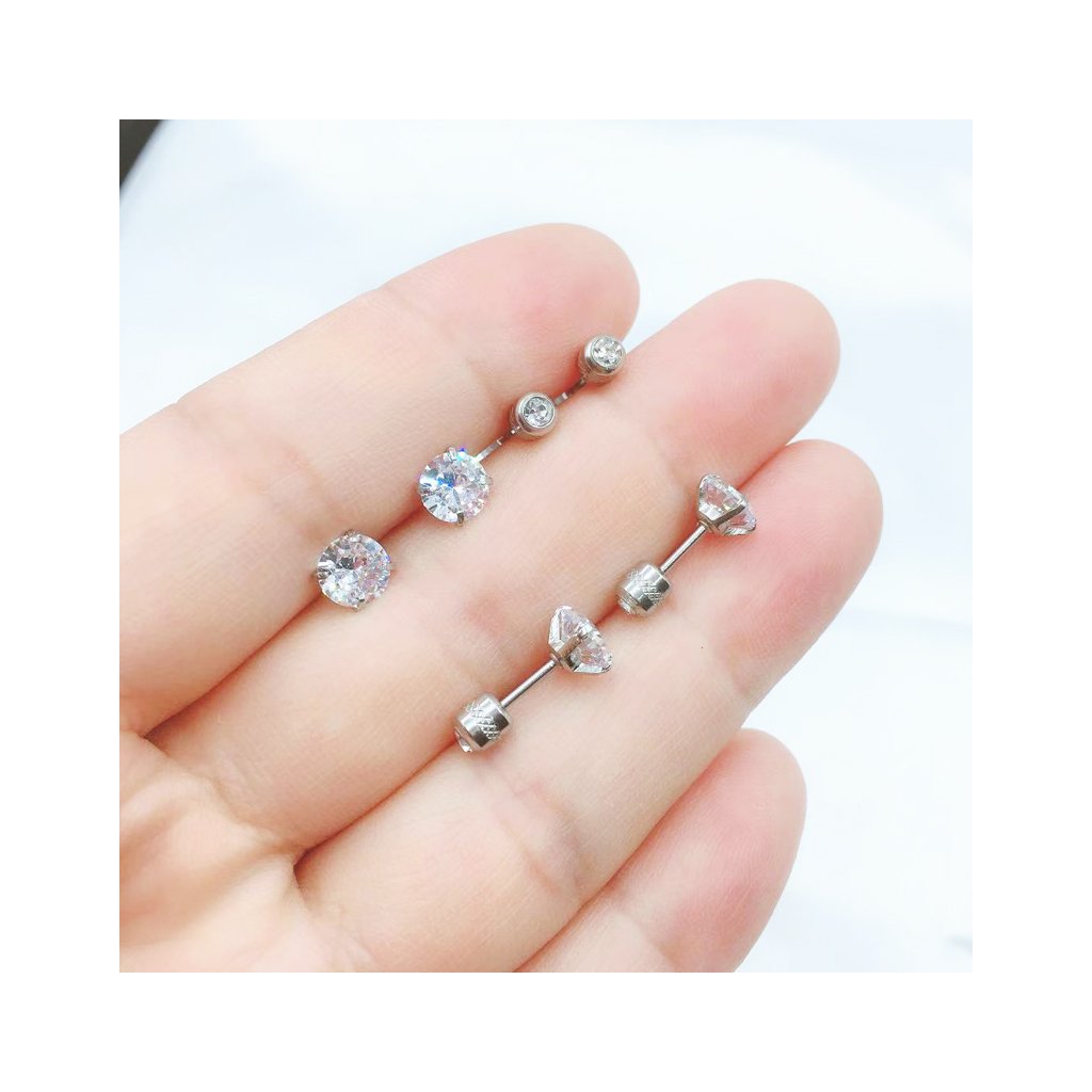 Ocelový cartilage piercing do ucha s čirými kamínky z obou stran