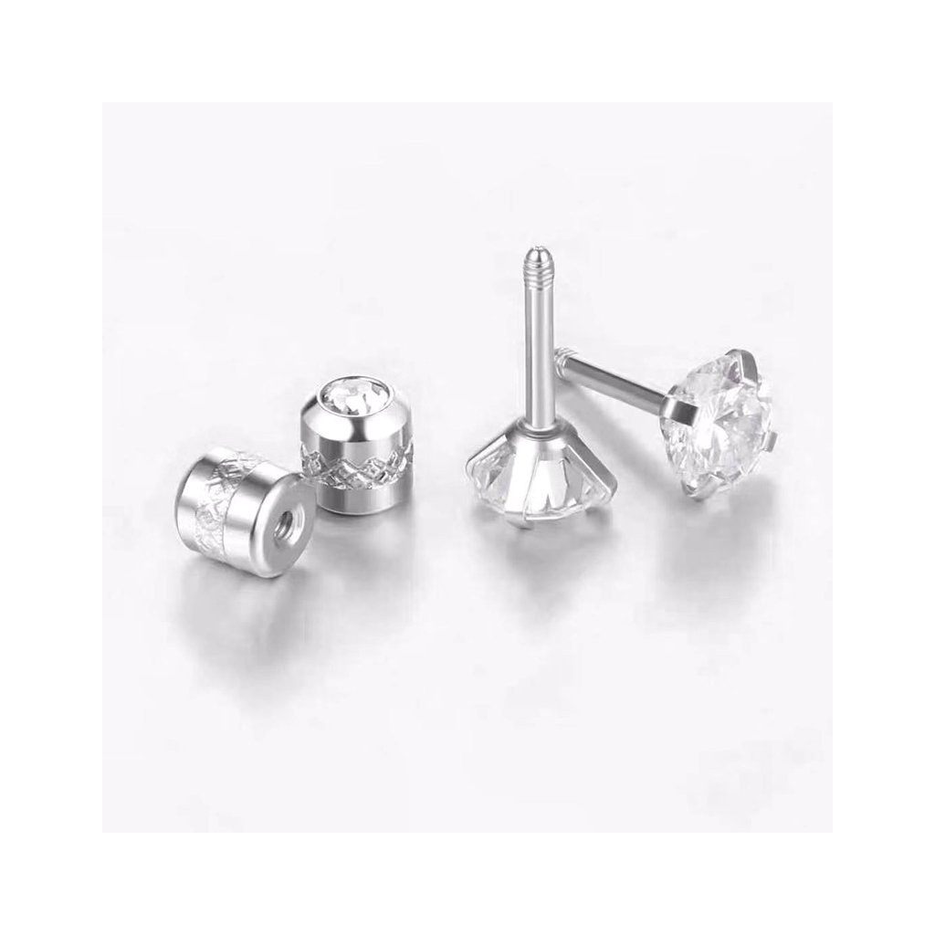 Stříbrný ocelový cartilage piercing do ucha s čirými kamínky z obou stran, 2 kusy