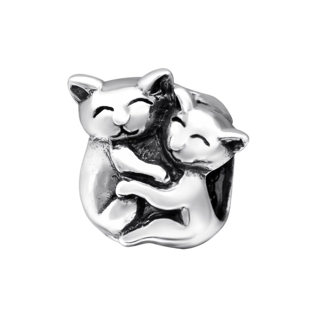 Stříbrný ozdobný korálek Kočky v objetí