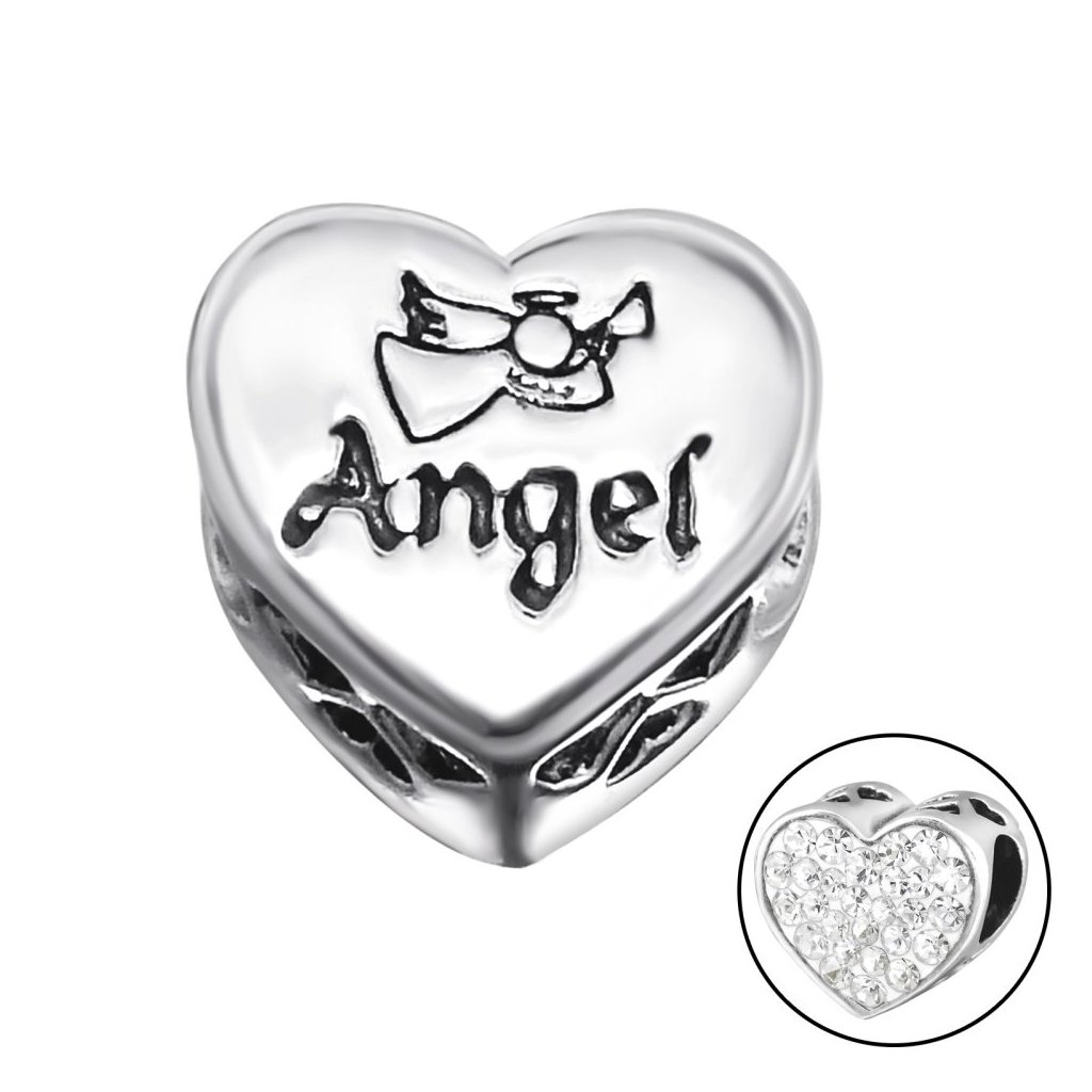 Stříbrný ozdobný korálek Srdce s čirými Krystaly - Angel