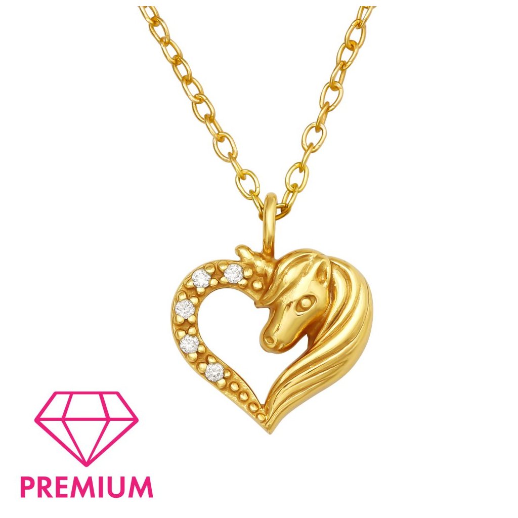 Stříbrný pozlacený náhrdelník Jednorožec v srdci se zirkony (CZ)