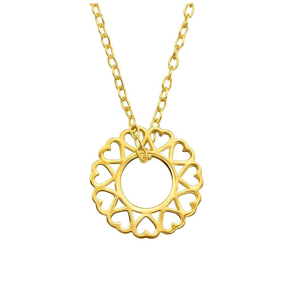 Stříbrný pozlacený náhrdelník Kruh srdcí