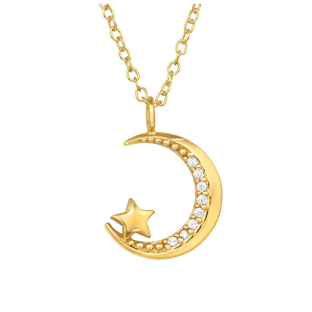Stříbrný pozlacený náhrdelník Měsíc a hvězda se zirkony (CZ)