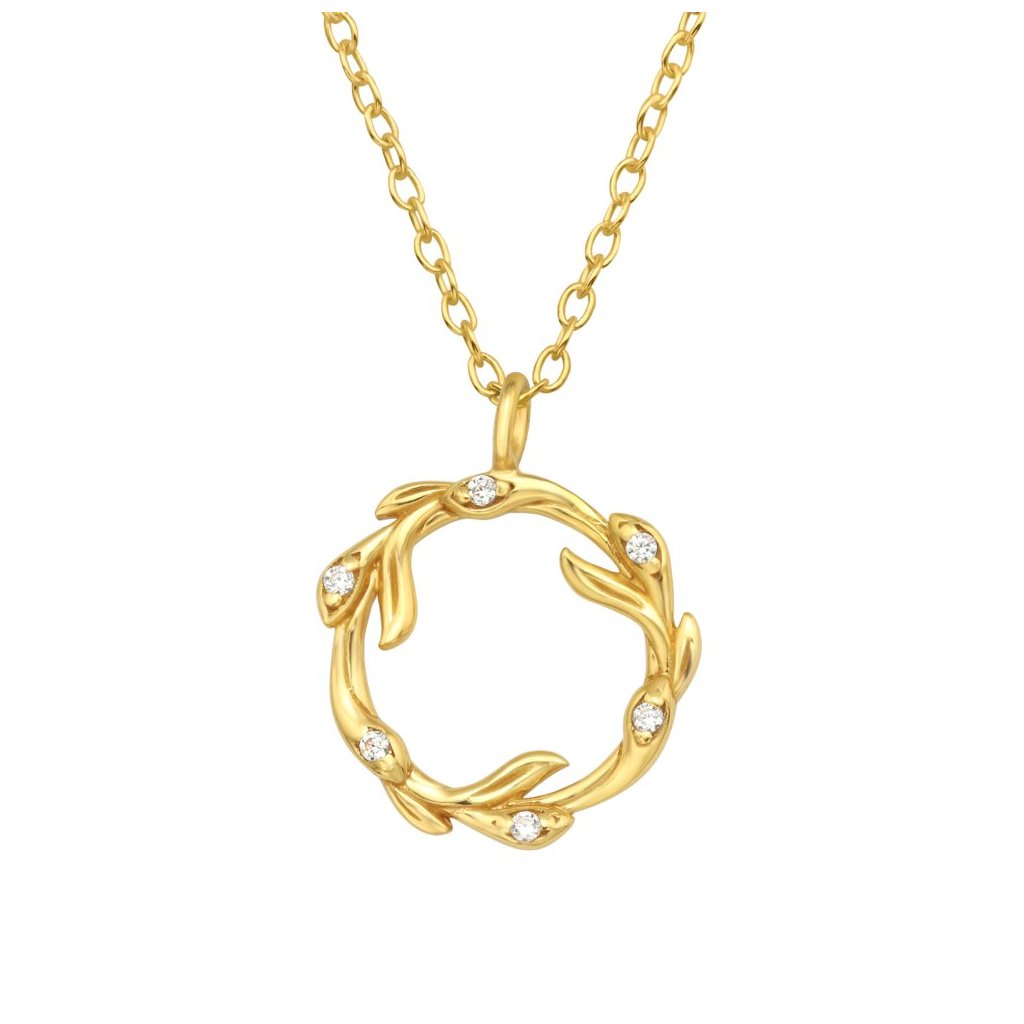 Stříbrný pozlacený náhrdelník Oběh listů se zirkony (CZ)