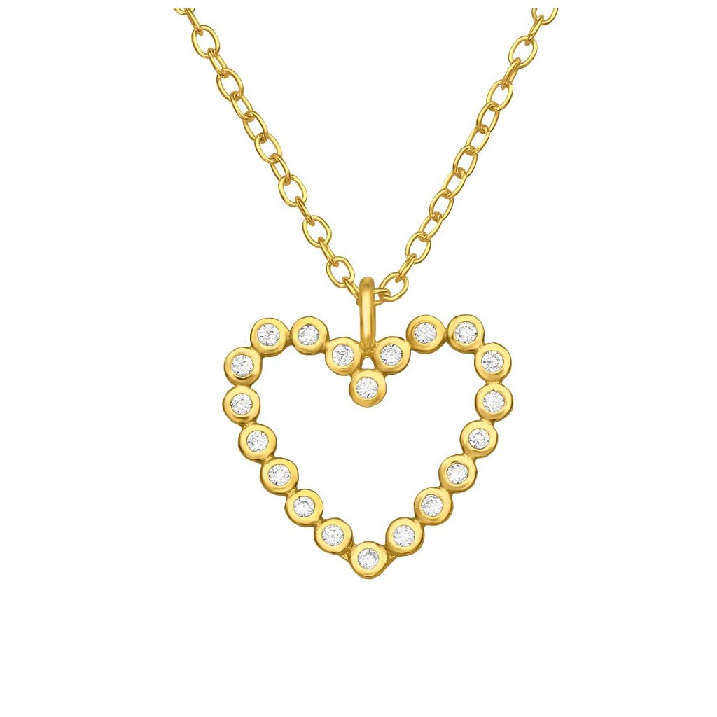 Stříbrný pozlacený náhrdelník Otevřené srdce se zirkony (CZ)
