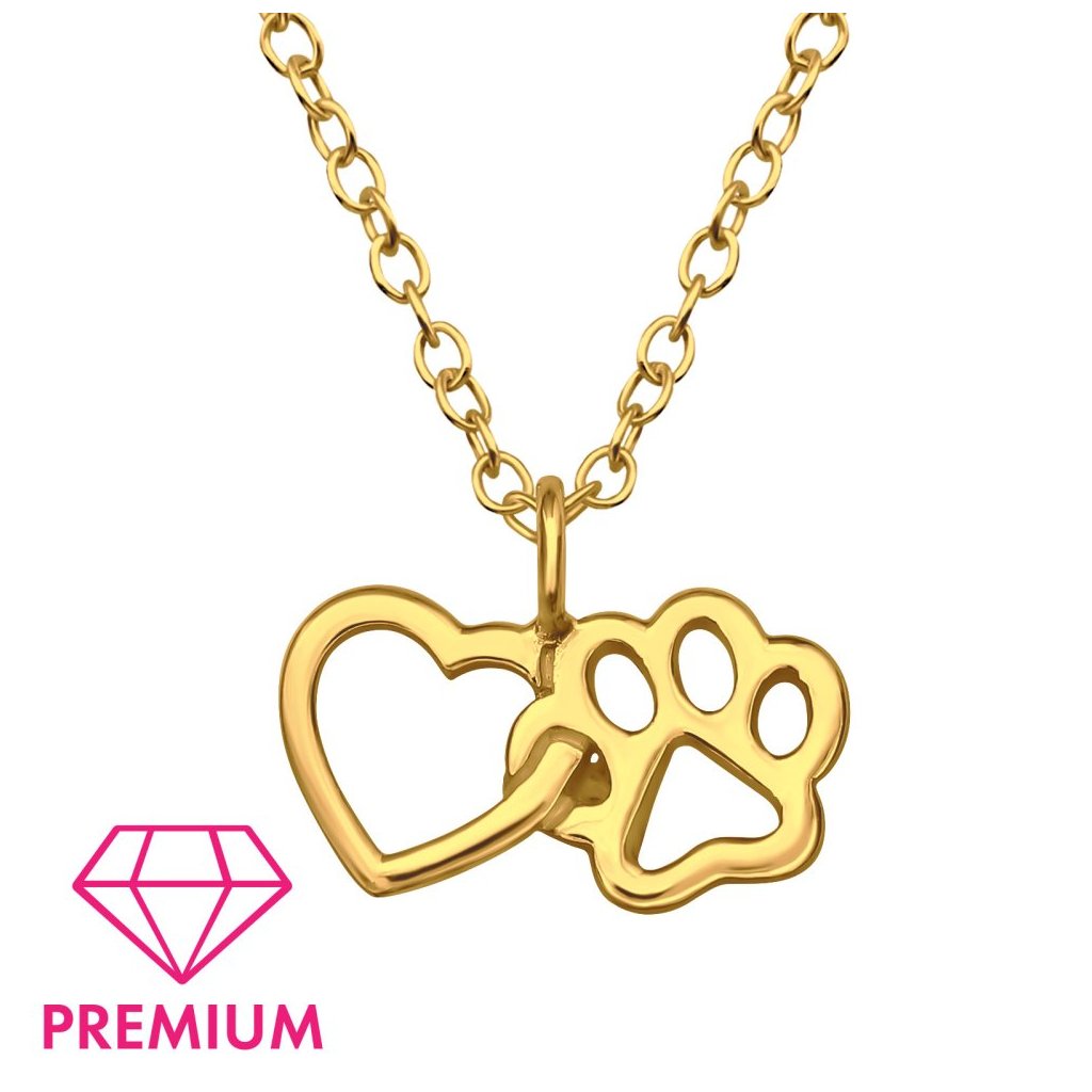 Stříbrný pozlacený náhrdelník Srdcový a tlapkový potisk