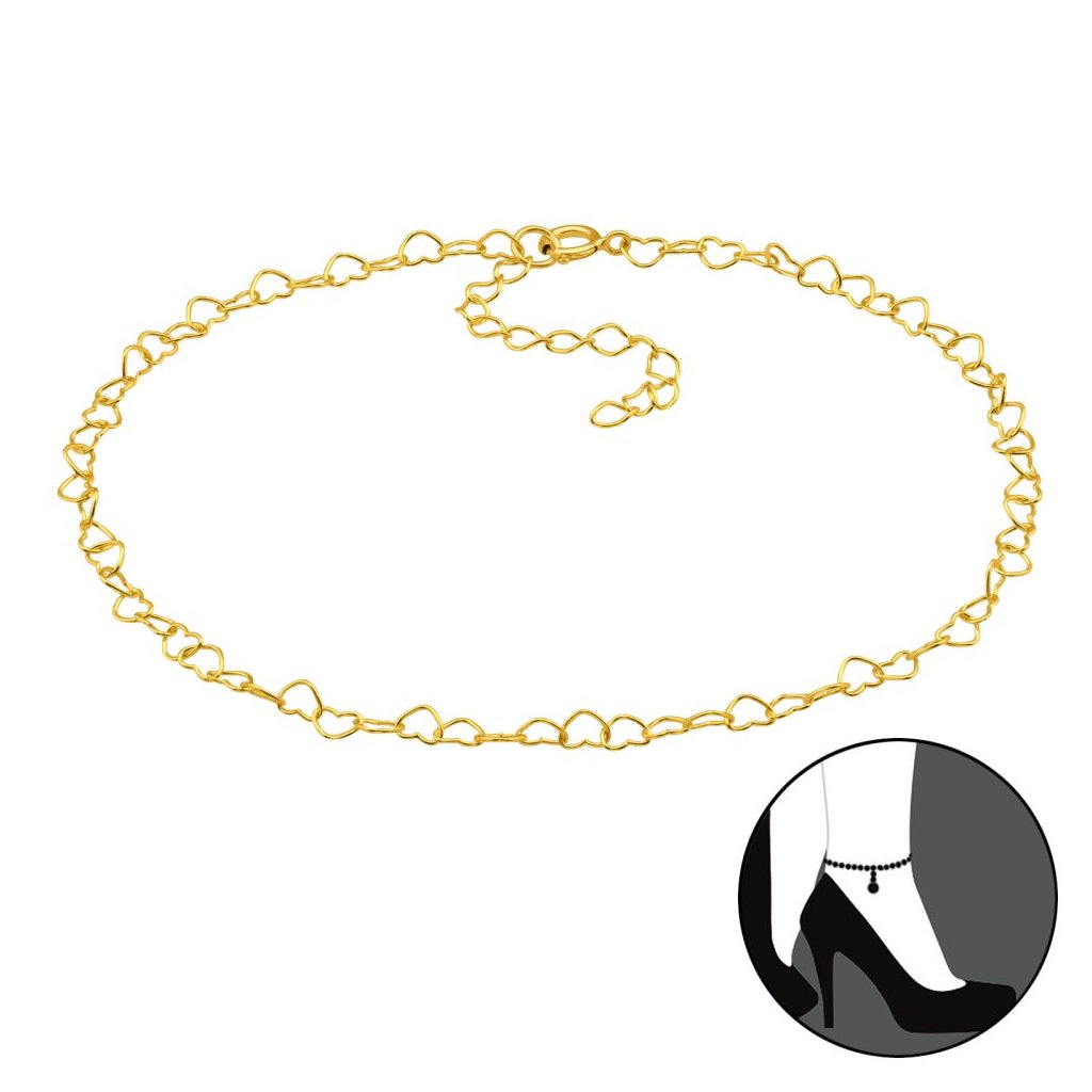 Stříbrný pozlacený srdcový řetízek na nohu je elegantní dámský šperk, který přidá vašemu vzhledu šarm a ženskost.