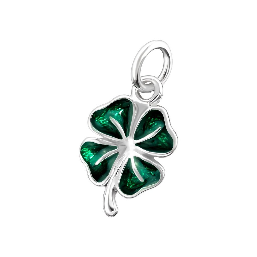 stříbrný přívěsek čtyřlístek, lístečky ze zeleného epoidu, 925/1000, Ecoat, velikost 10 x 13 mm, váha 0,90 g