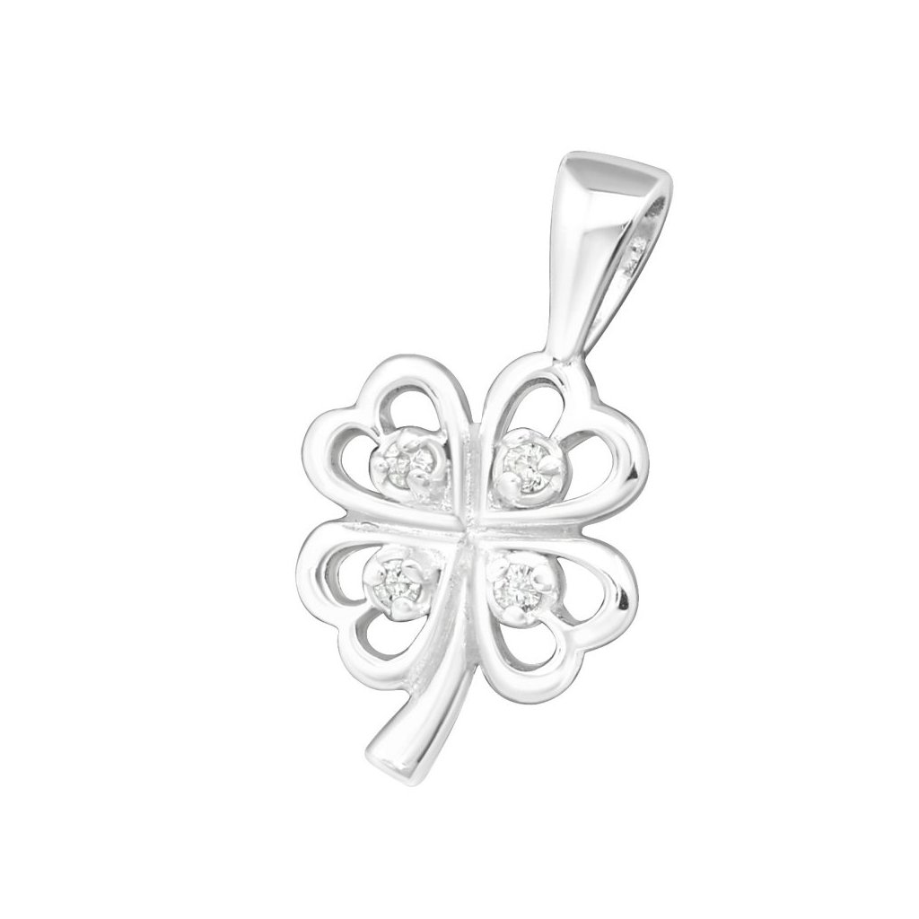 Stříbrný přívěsek Čtyřlístek se zirkony (CZ)