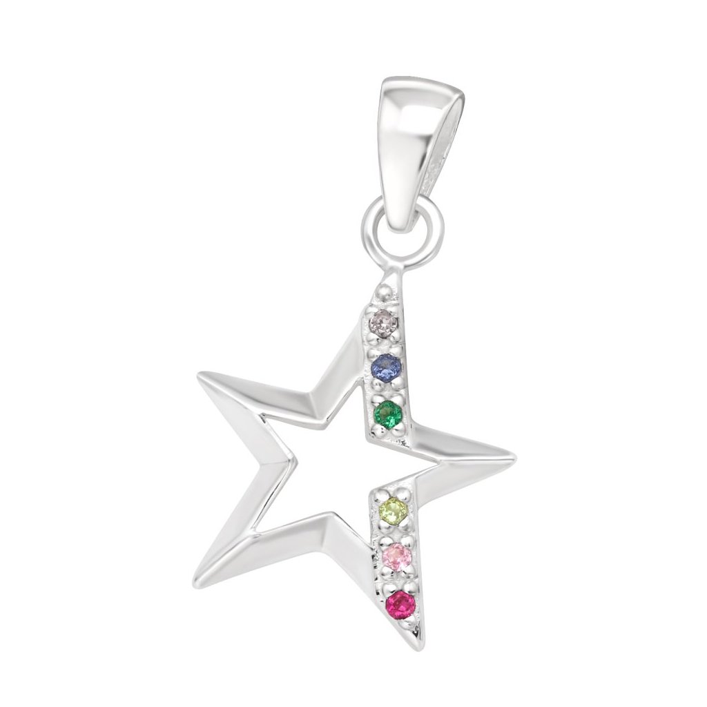 Stříbrný přívěsek "Hvězda se zirkony" je elegantní dámský šperk, který přináší nádech barevné radosti a kouzla. Vyrobený z kvalitního stříbra a pokovený E-coat, zajišťuje dlouhou životnost a odolnost proti poškrábání.