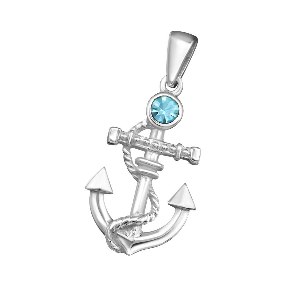 Stříbrný přívěsek Kotva se světle modrým Krystalem