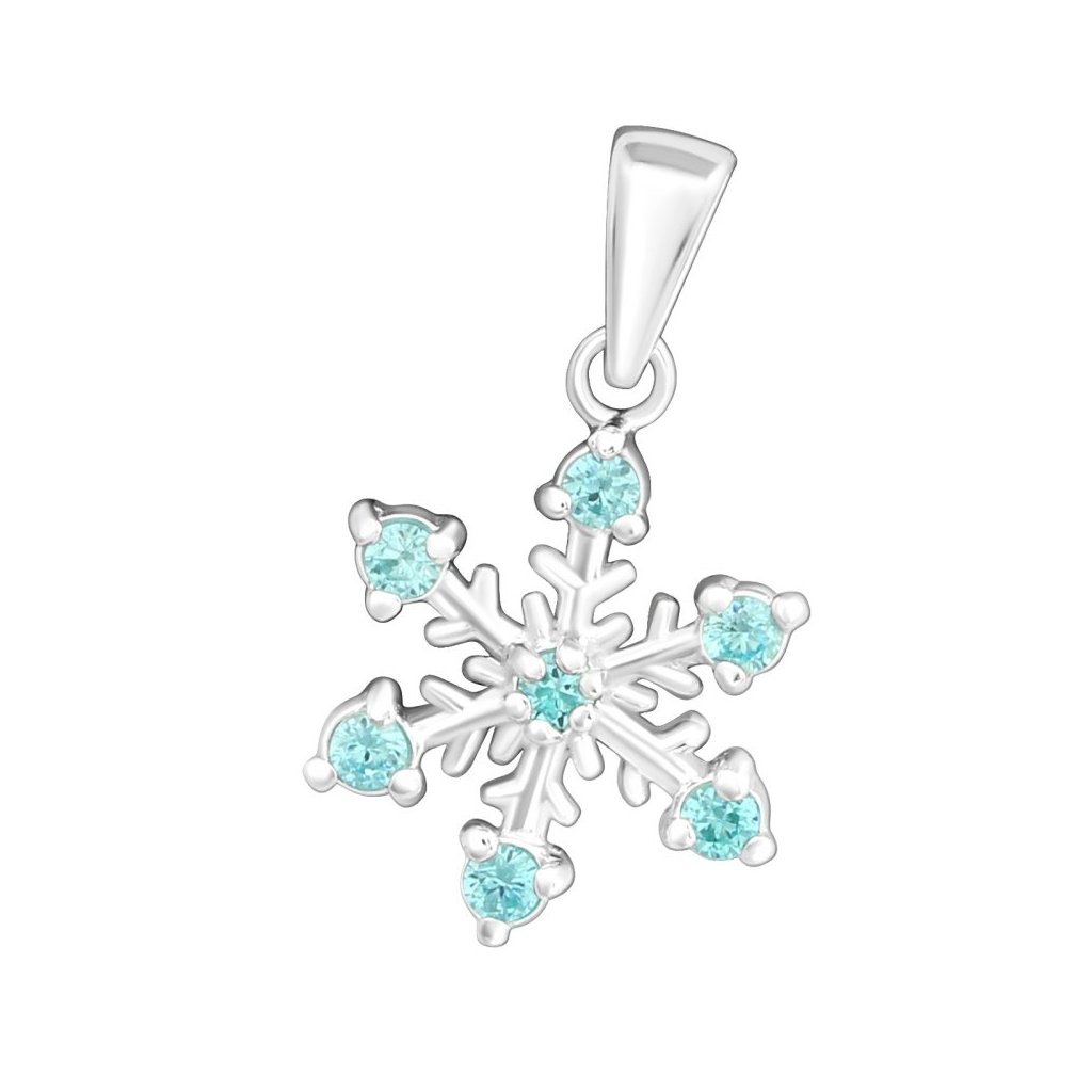 Stříbrný přívěsek Sněhová vločka se světle modrými zirkony (CZ)
